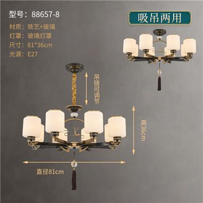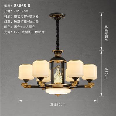 88638【锌合金+铁艺】新中式灯具客厅吊灯 禅意中国风 大气复式楼 现代中式配套吊灯 带防尘盖