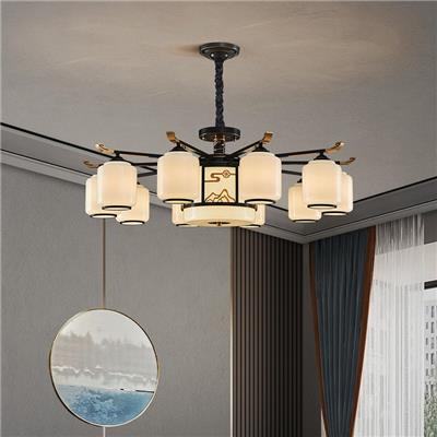 8099 【锌合金】新中式灯具客厅吊灯 禅意中国风 大气复式楼 现代中式配套吊灯 带防尘盖